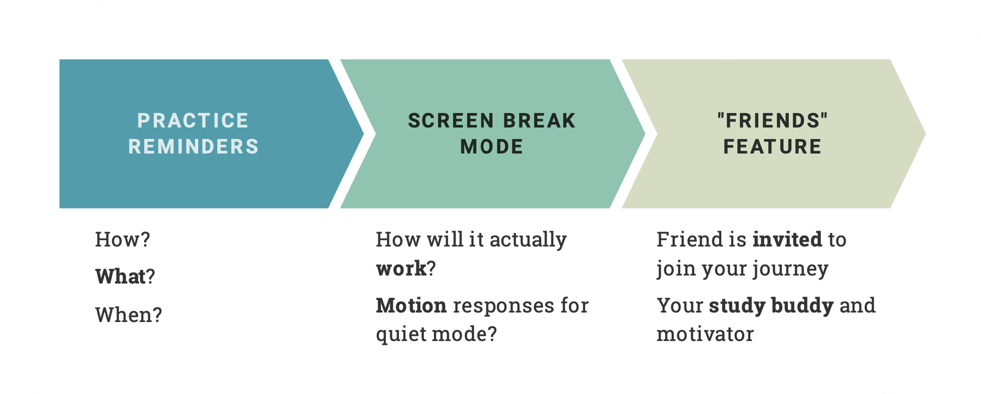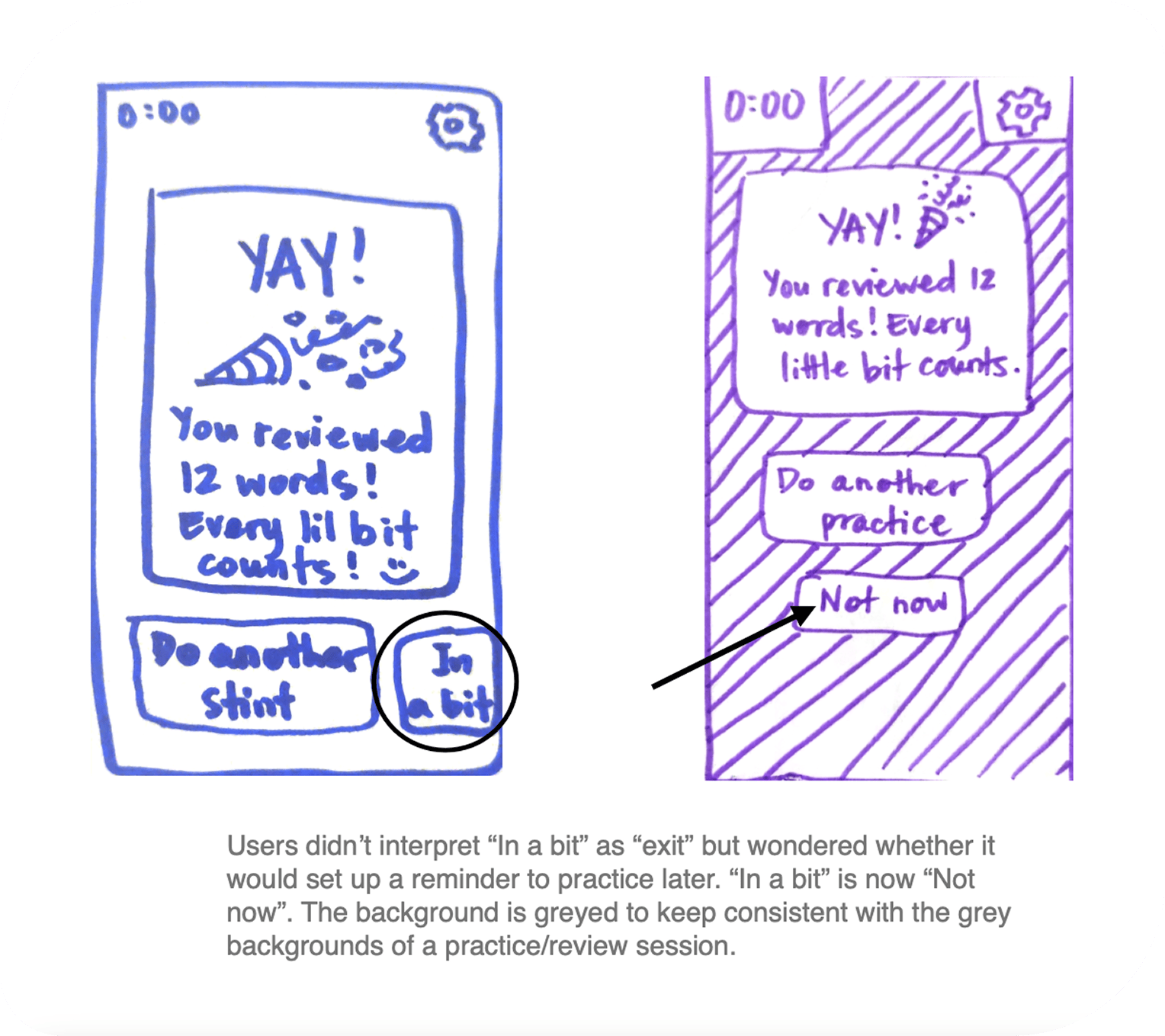 The unaddressed plot point in our learner’s story was the social element that was vital in sustaining motivation: How might the “Friends” feature invite a friend to be the learner’s study buddy and motivator?