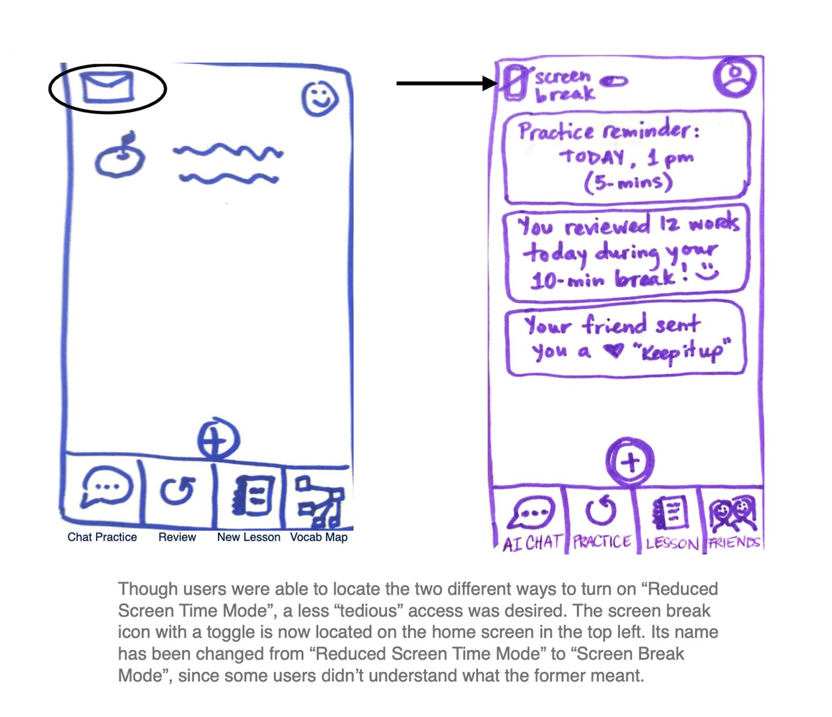 For example, some learners considered “Vocab Map” as a way to add a new word or to do a review. Interestingly, some learners didn’t think “Review” was to review, since it sounded more passive next to “Chat Practice”, which was interpreted as review.