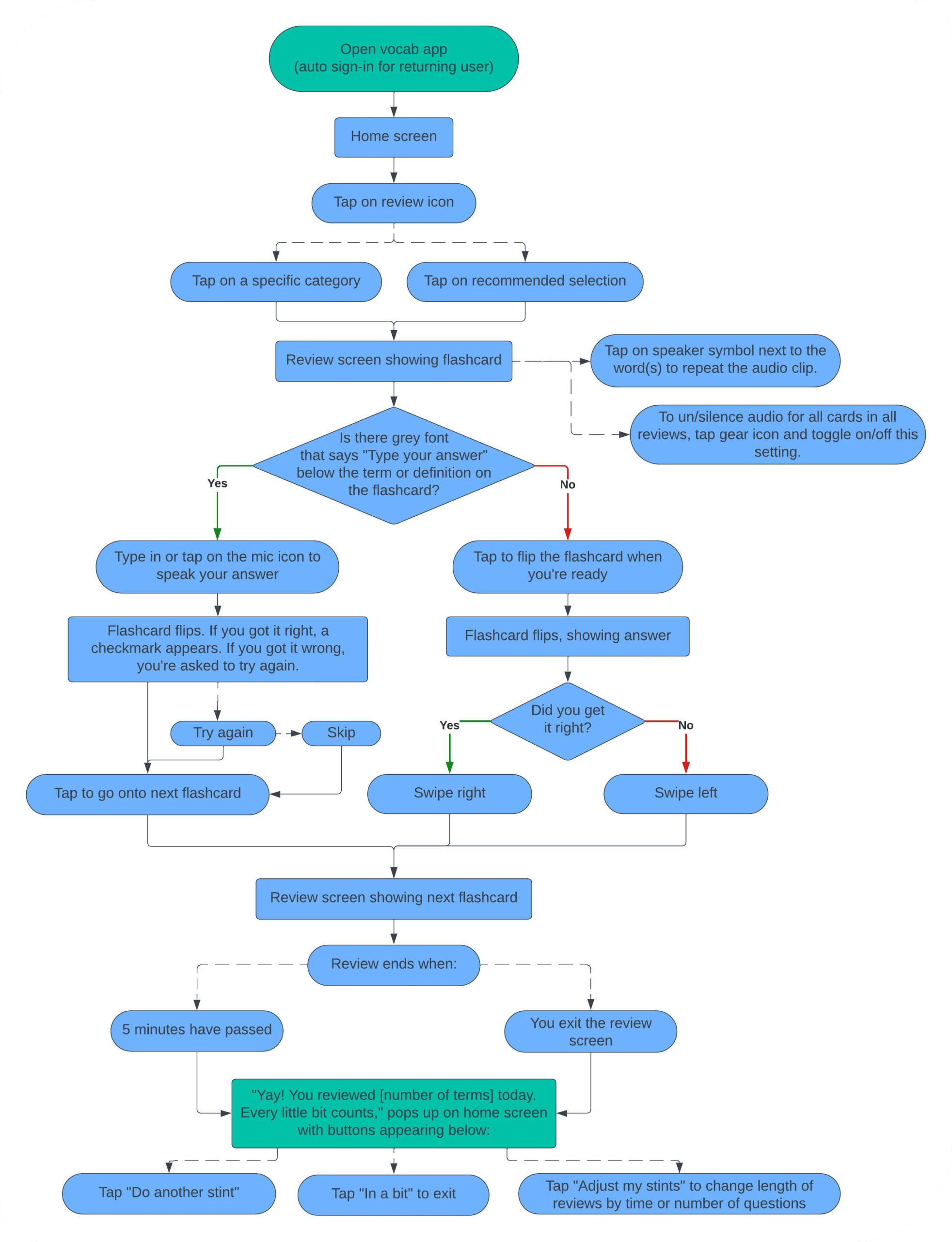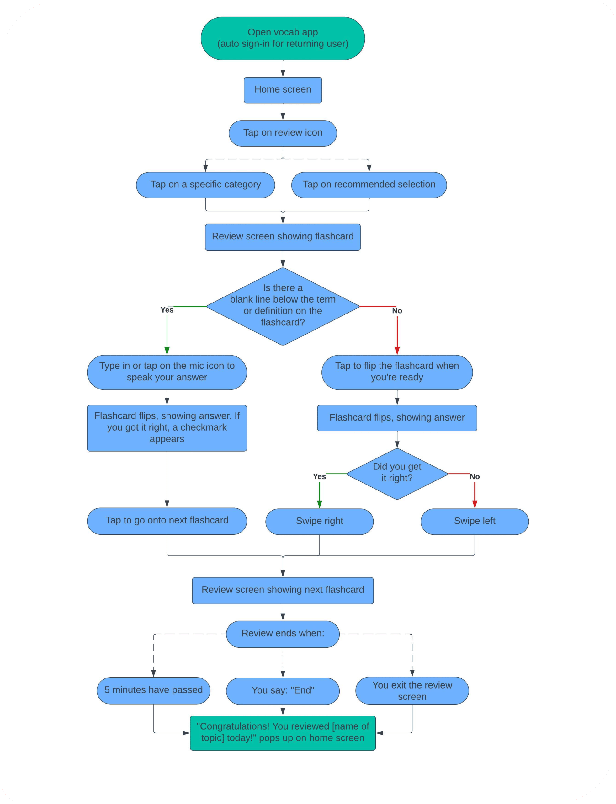 But the project brief also provided requirements for what needed to be built. Altogether, the flashcard mobile app prioritized 4 task flows: