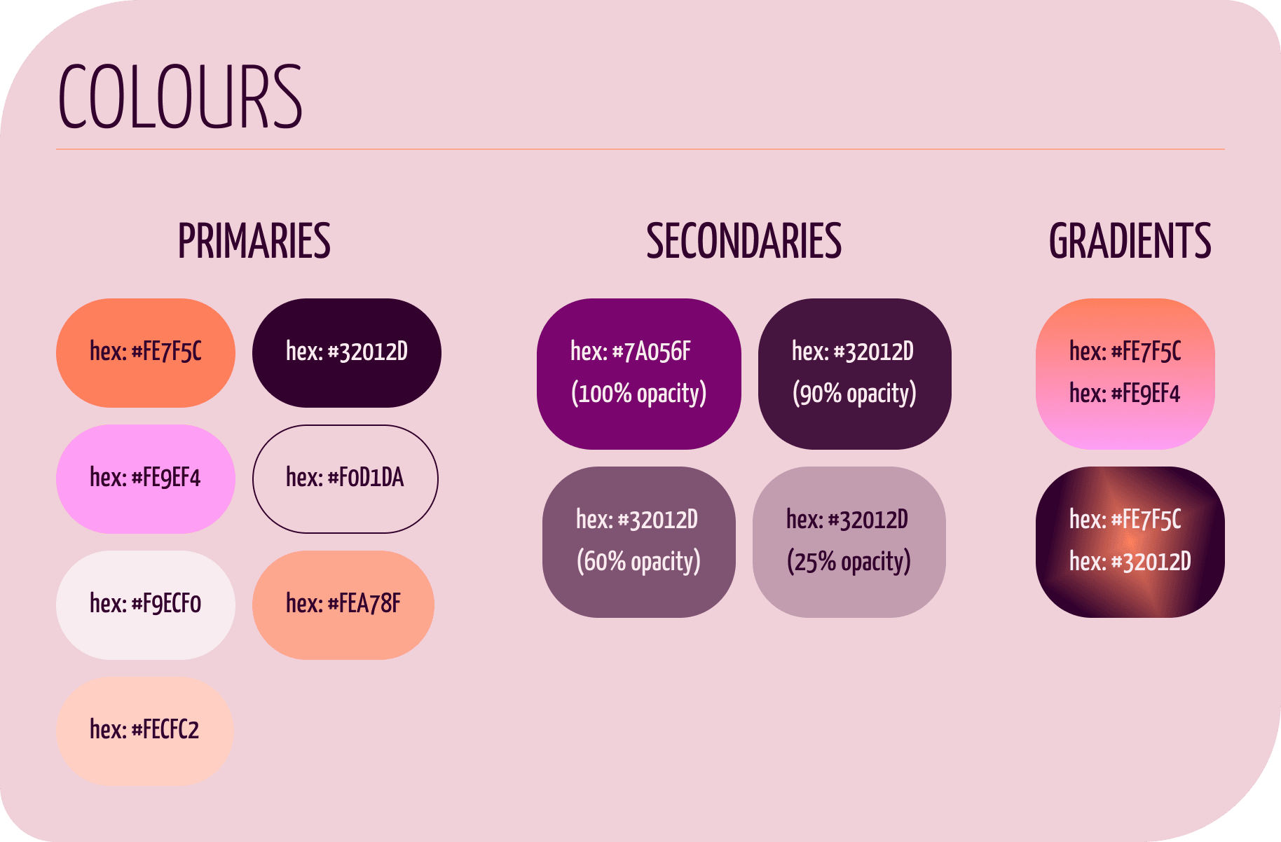 In the end, the last palette was chosen to emphasize a more feminine, social-focused tone.