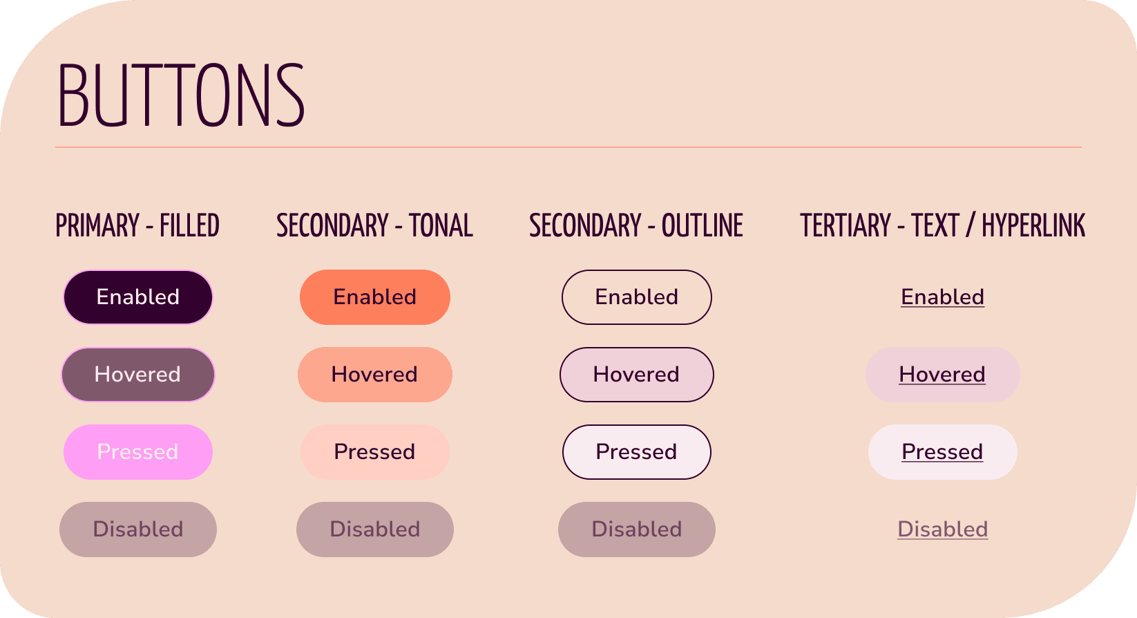 Some of the sections I created were guidelines for iconography, typography, colours, buttons, imagery, and grids.