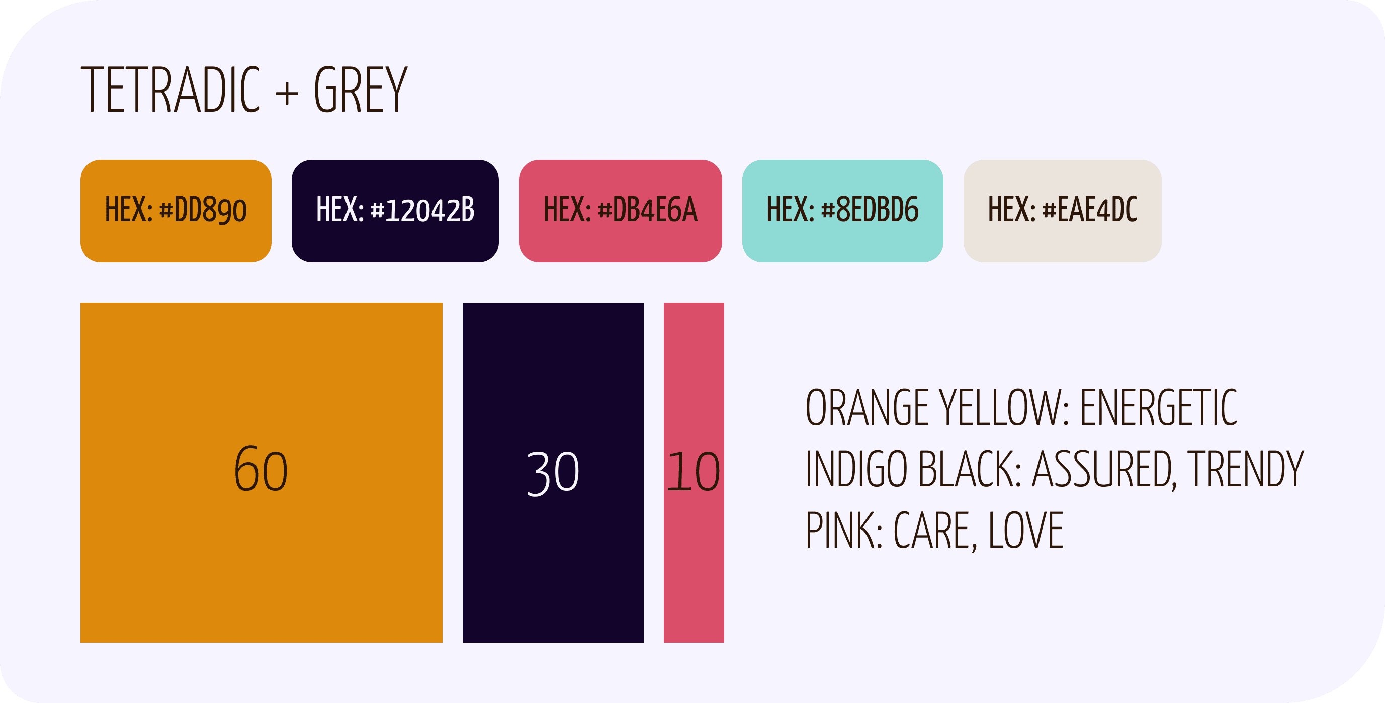 I referred to an emotion colour wheel as I distilled different colour palettes from my chosen moodboard. The colour harmony was also important in determining which colours were grouped together, to create a strong impression or a more nuanced one.