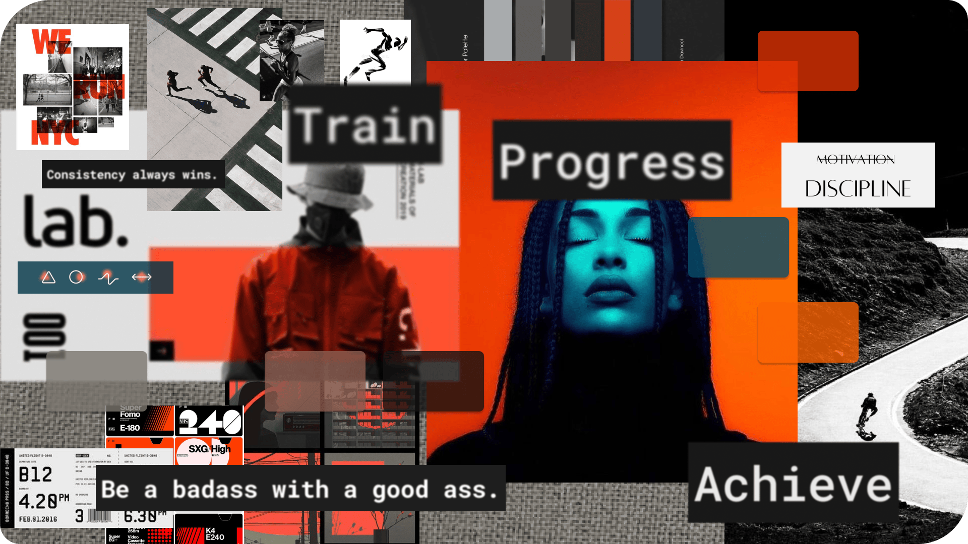 Moodboard B portrays a disciplined, committed approach to motivation. It could feel more intense, as the idea is to push hard to get the results you want.