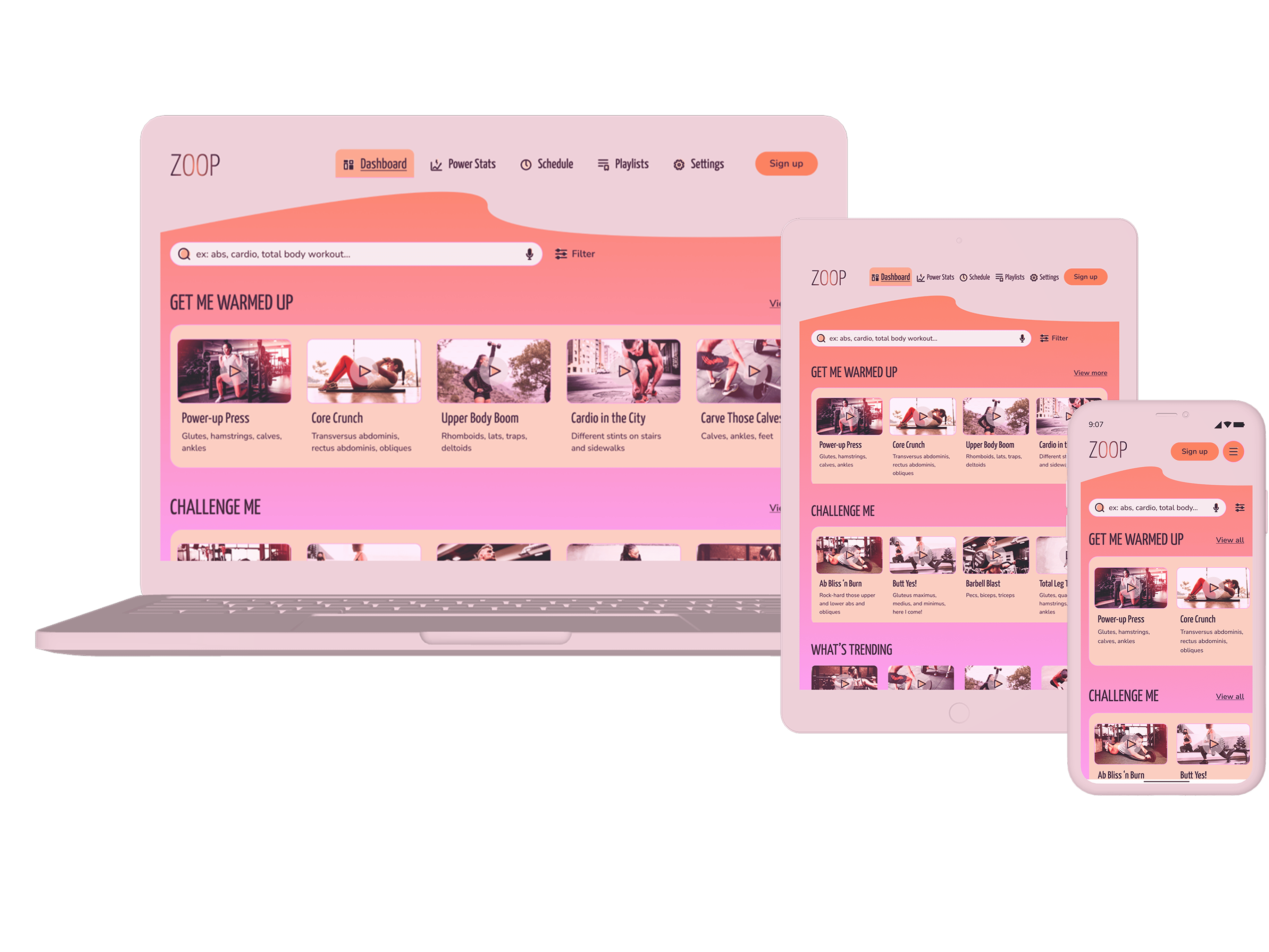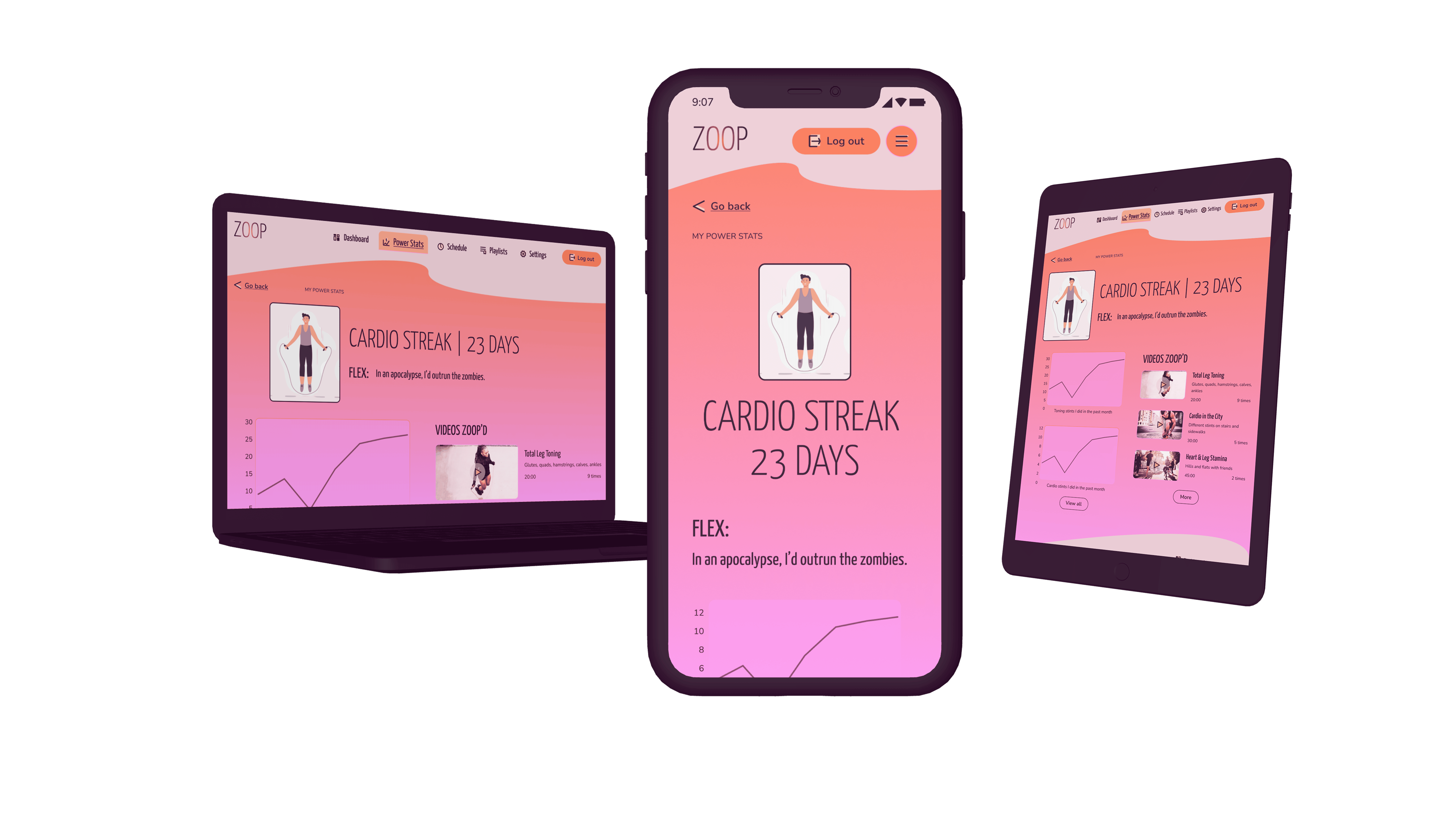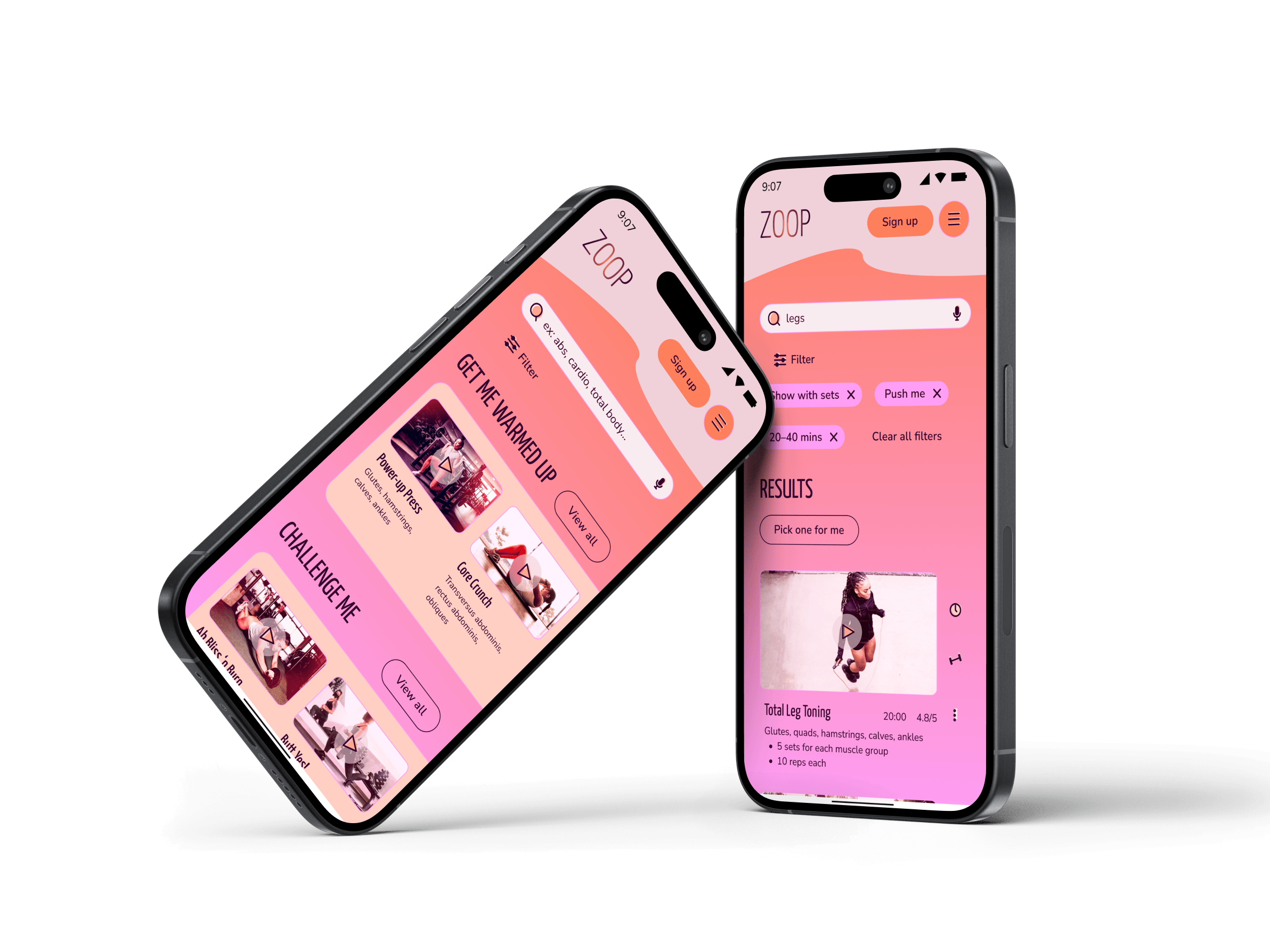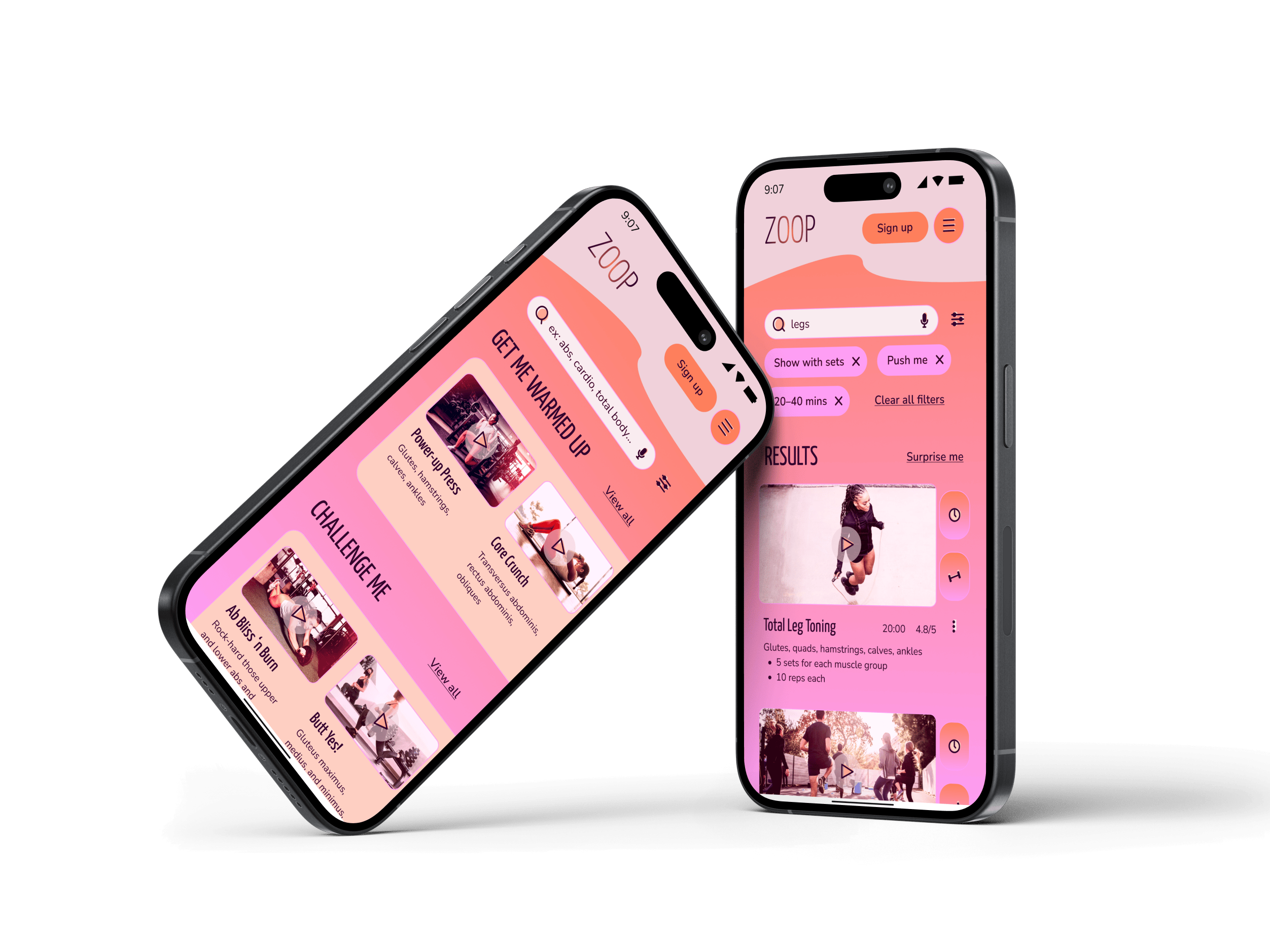 Throughout the wireframing/prototyping iterations, I kept in mind ZOOP’s brand tone: fun, motivated, better. It needed to maintain an upbeat energy while giving important information to support someone who’s just getting back into exercising.