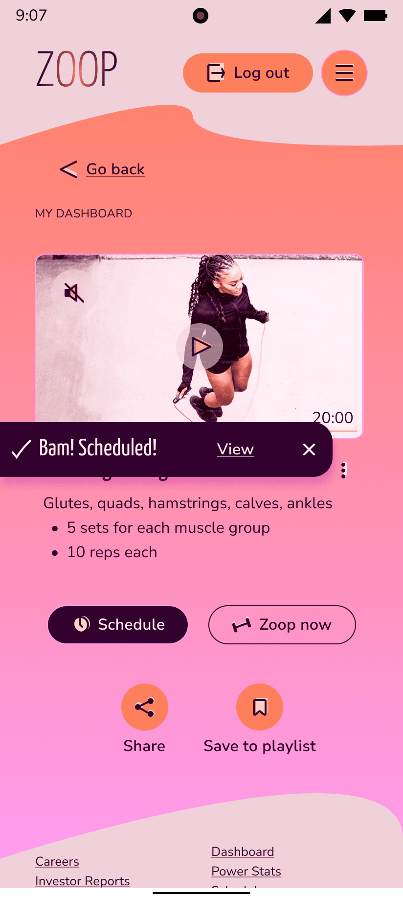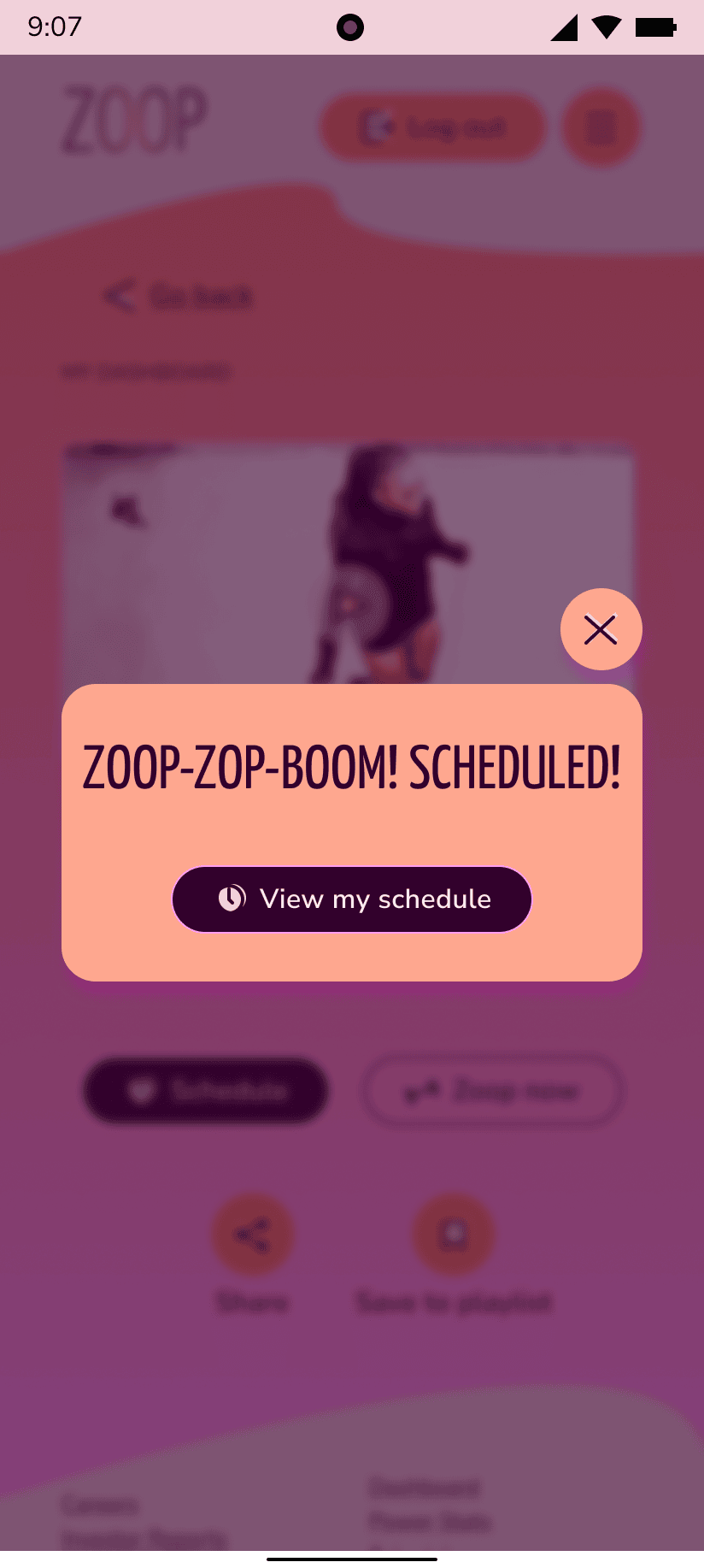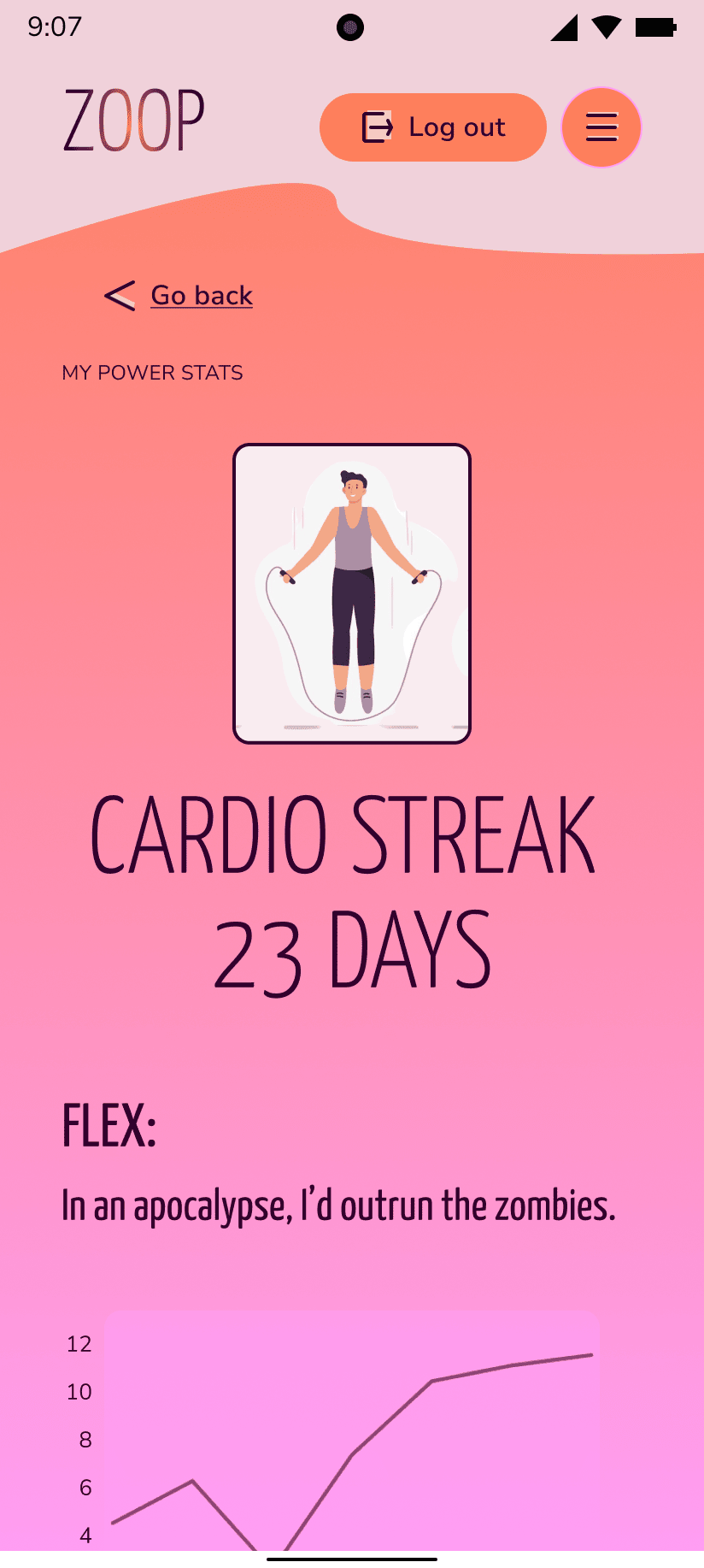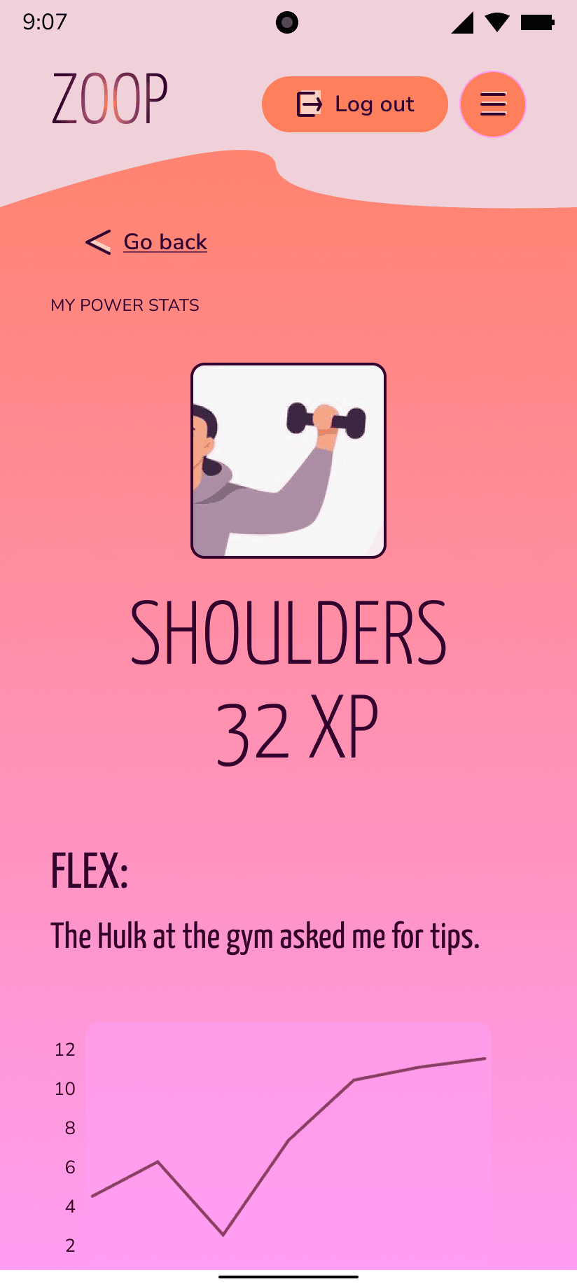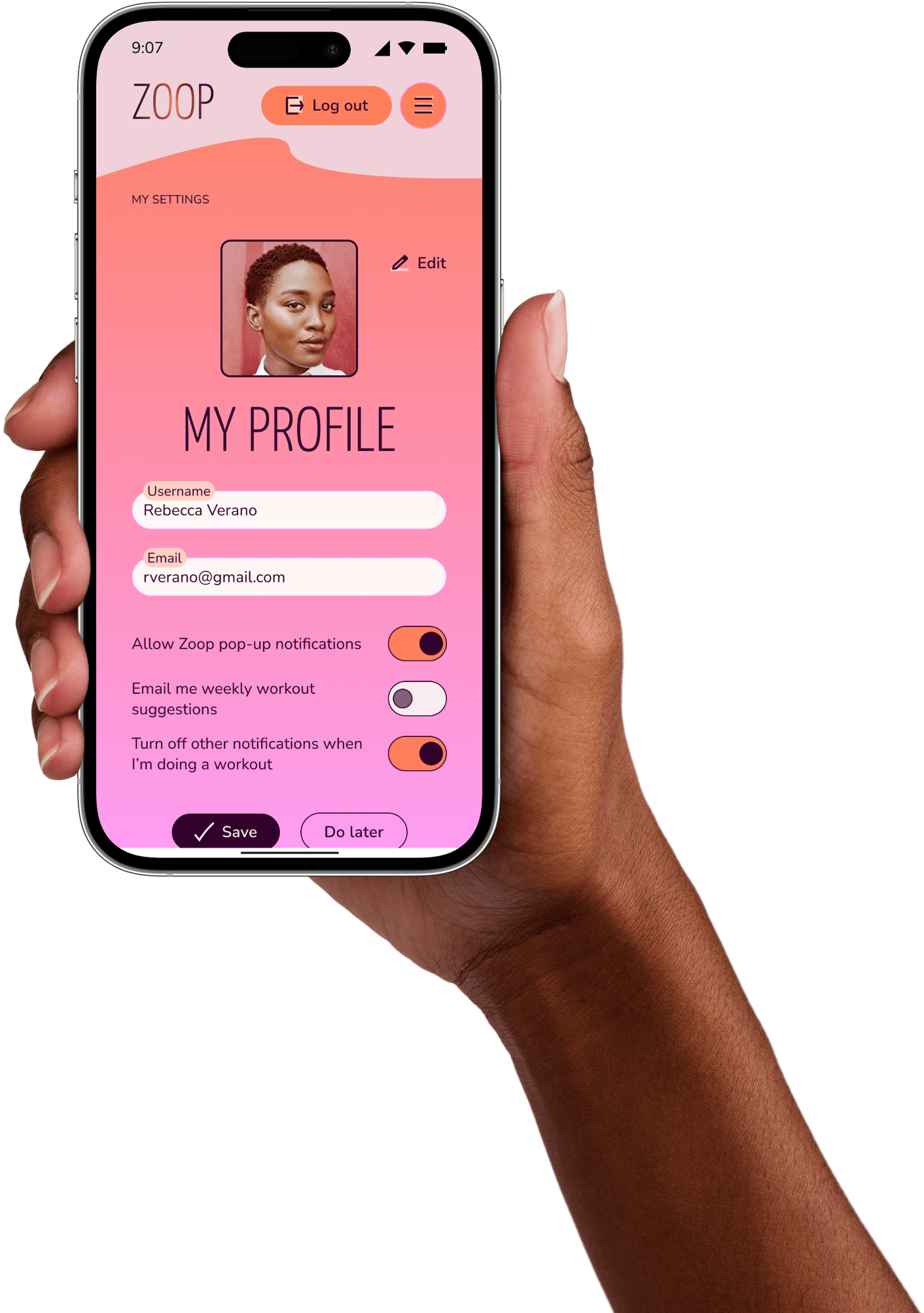 Throughout the wireframing/prototyping iterations, I kept in mind ZOOP’s brand tone: fun, motivated, better. It needed to maintain an upbeat energy while giving important information to support someone who’s just getting back into exercising.